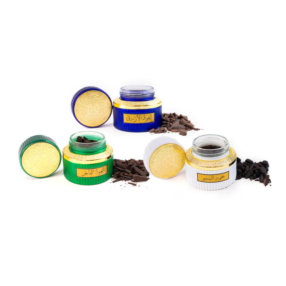 - بخور العود الأزرق: واحد من أفخم أنواع البخور يتميز برائحة فاخرة ويعرف بلونه الأزرق الملكي. هذا النوع يجمع بين مزيج استثنائي من الأعشاب والزهور الطبيعية، ليمنح منزلك عبقًا عطرًا يدوم طويلاً. العبوة بحجم 60 جم، متاحة حصريًا من متجر أرض الأجداد بأفضل الأسعار والجودة.