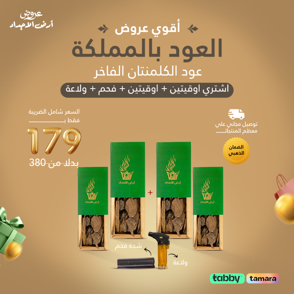 عرض 4 اوقيات عود كلمنتان المميز اللي بيدي فخامة للمكان وفحم سريع الاشتعال وولاعة صغيرة أنيقة